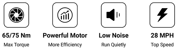 500W/750W Nabenmotoren gehören zu den fortschrittlichsten und leistungsstärksten ihrer Klasse. Trotz ihrer kompakten Bauweise bieten sie ein maximales Motordrehmoment von 65 bis 75 N.m. für optimale Steigfähigkeit, Reichweite und Geschwindigkeit. Mit dem Daumengashebel lassen sich Geschwindigkeit und Leistung leicht kontrollieren. Der Bafang-Motor verhilft Ihrem Trax zu einer Steiggeschwindigkeit von bis zu 28 km/h, wenn er Sie beim Treten unterstützt.